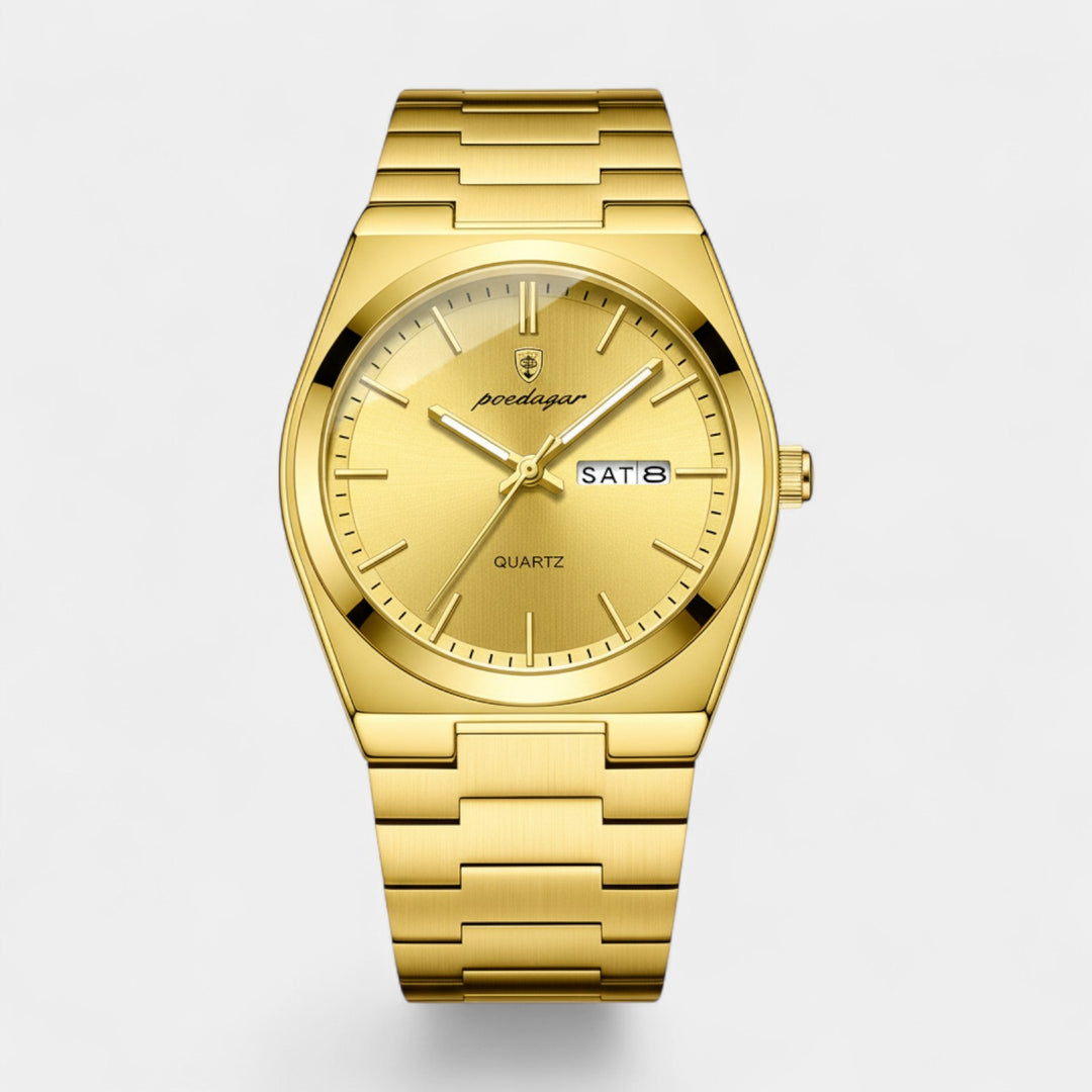 Rig | Guldfarvet Herreur i Rustfrit Stål – Lysende Kvarts og Vandtæt 43 mm