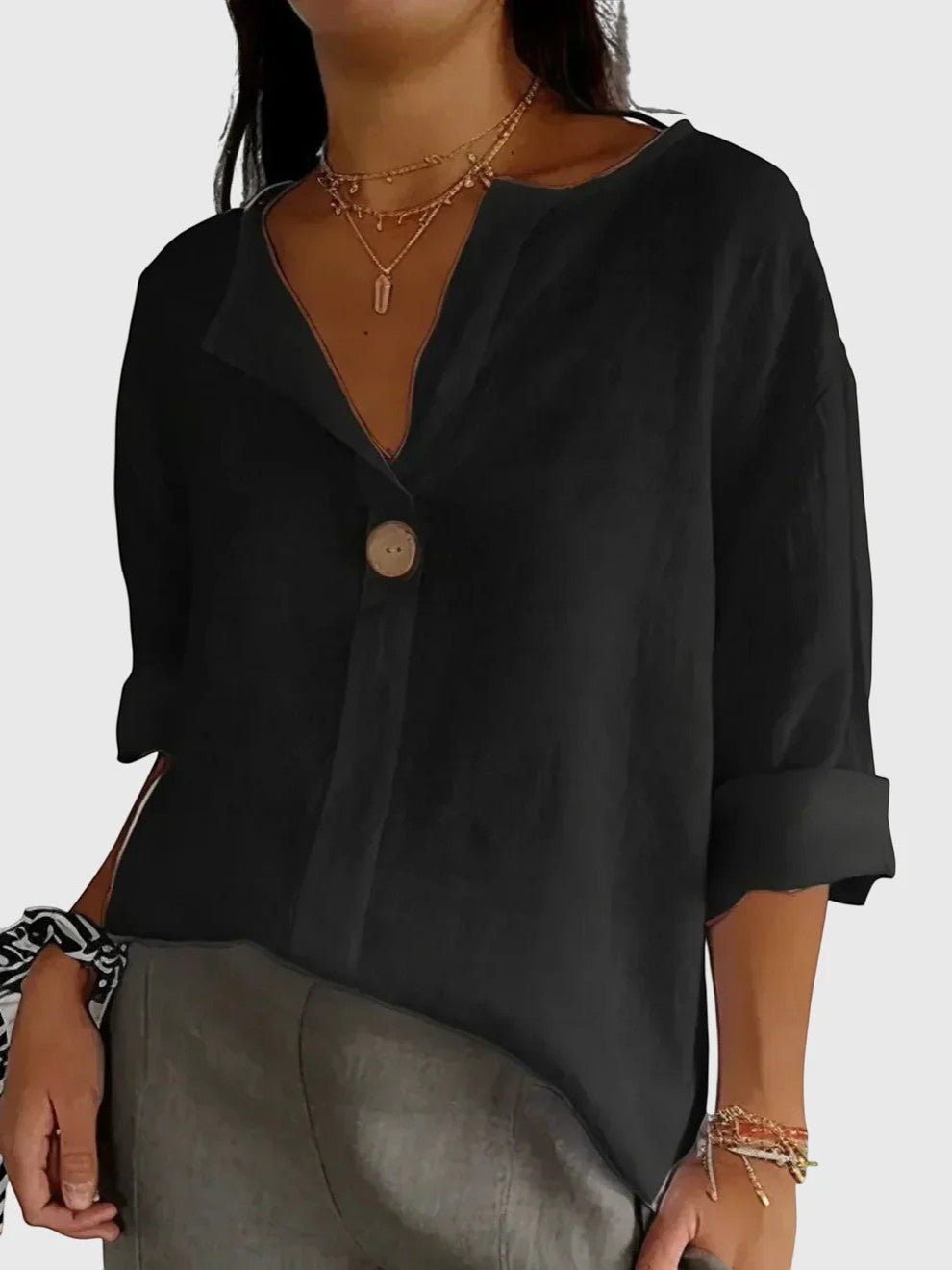 Riche | Skjorte til kvinder i hørblend med V-hals og knapper