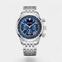 Conçue pour la précision et la prestance, cette montre pour homme de 43 mm en acier inoxydable allie esthétique raffinée et fonctionnalités avancées de chronographe. Son mouvement quartz à six aiguilles et ses trois sous-cadrans assurent un contrôle absolu, tandis que l’affichage lumineux garantit une lisibilité parfaite en toute circonstance. Étanche et robuste, son bracelet en acier poli incarne la puissance maîtrisée et l’attention au détail.