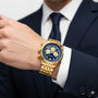 Riche | Montre pour Homme Dorée en Acier Inoxydable – Quartz Lumineuse et Étanche 43 mm