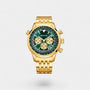 Symbole de précision et de présence, cette montre pour homme dorée en acier inoxydable de 43 mm allie maîtrise technique et élégance affirmée. Dotée de trois sous-cadrans fonctionnels et de six aiguilles, elle offre une lecture claire et lumineuse en toutes circonstances. Son mouvement quartz étanche assure une fiabilité constante, tandis que son boîtier et son bracelet dorés incarnent une autorité tranquille et intemporelle.