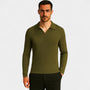 Riche | Polo homme manches longues col V – élégance maille verticale